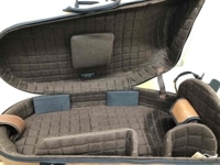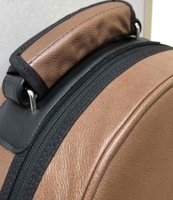 「ブルーレザー」です。ナイロンのカジュアルさとは異なるリアルレザーのプレミアム感が 溢れます。 ケースサイズは約74 X 43 X 33センチ、 バックパックタイプのストラップが2本と、マウスピースポーチが付属します。 |